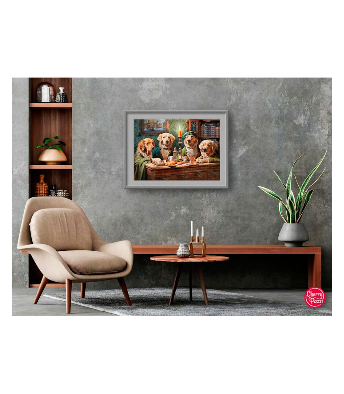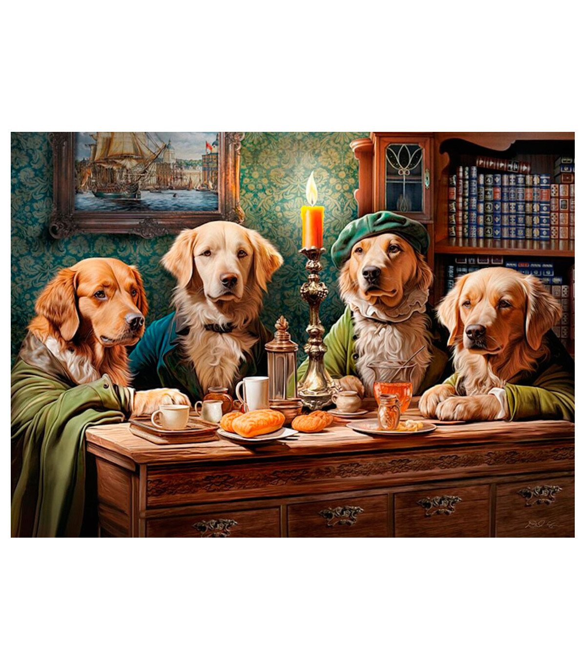 Presentamos otra idea única combinada con sentido del humor. El diseño original y el altísimo nivel de rendimiento lo convierten en un rompecabezas único. El ambiente extraordinario y, sobre todo, los perros absolutamente adorables quedarán geniales en tu pared. Nuestros cuatro encantadores golden retrievers son amigos verdaderamente devotos. La felicidad es la compañía de nuestros amigos de cuatro patas y como ves tienen alma, carácter y sensibilidad. Deja que encuentren el camino a tu corazón...