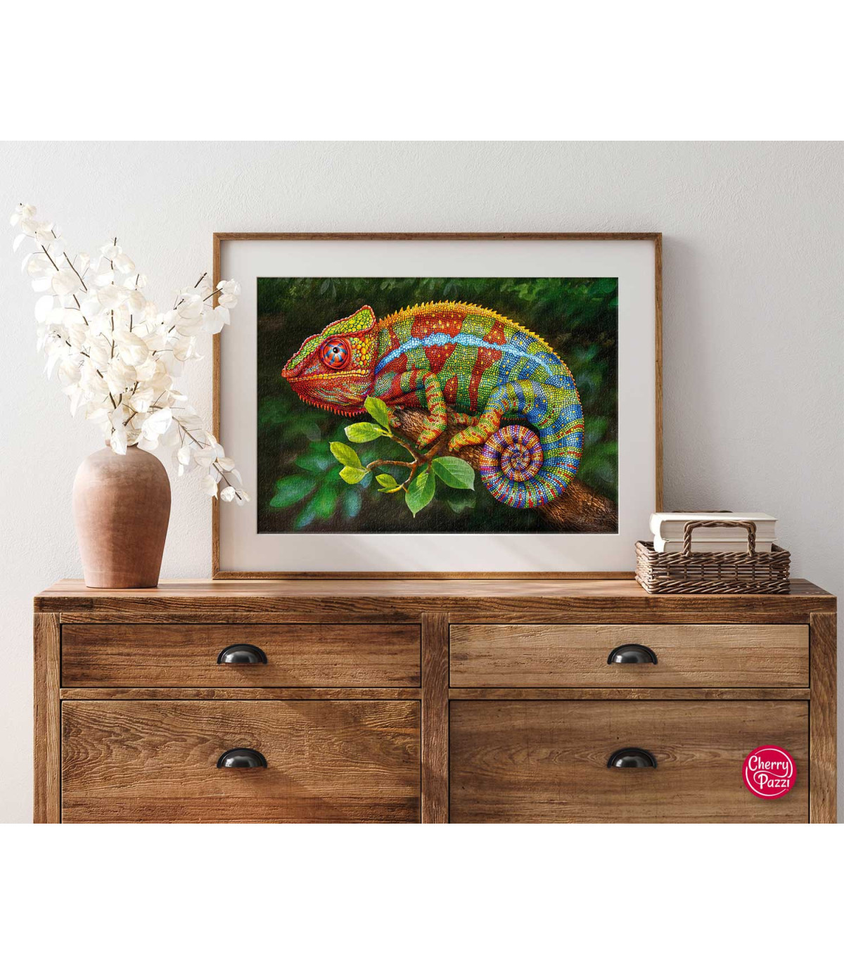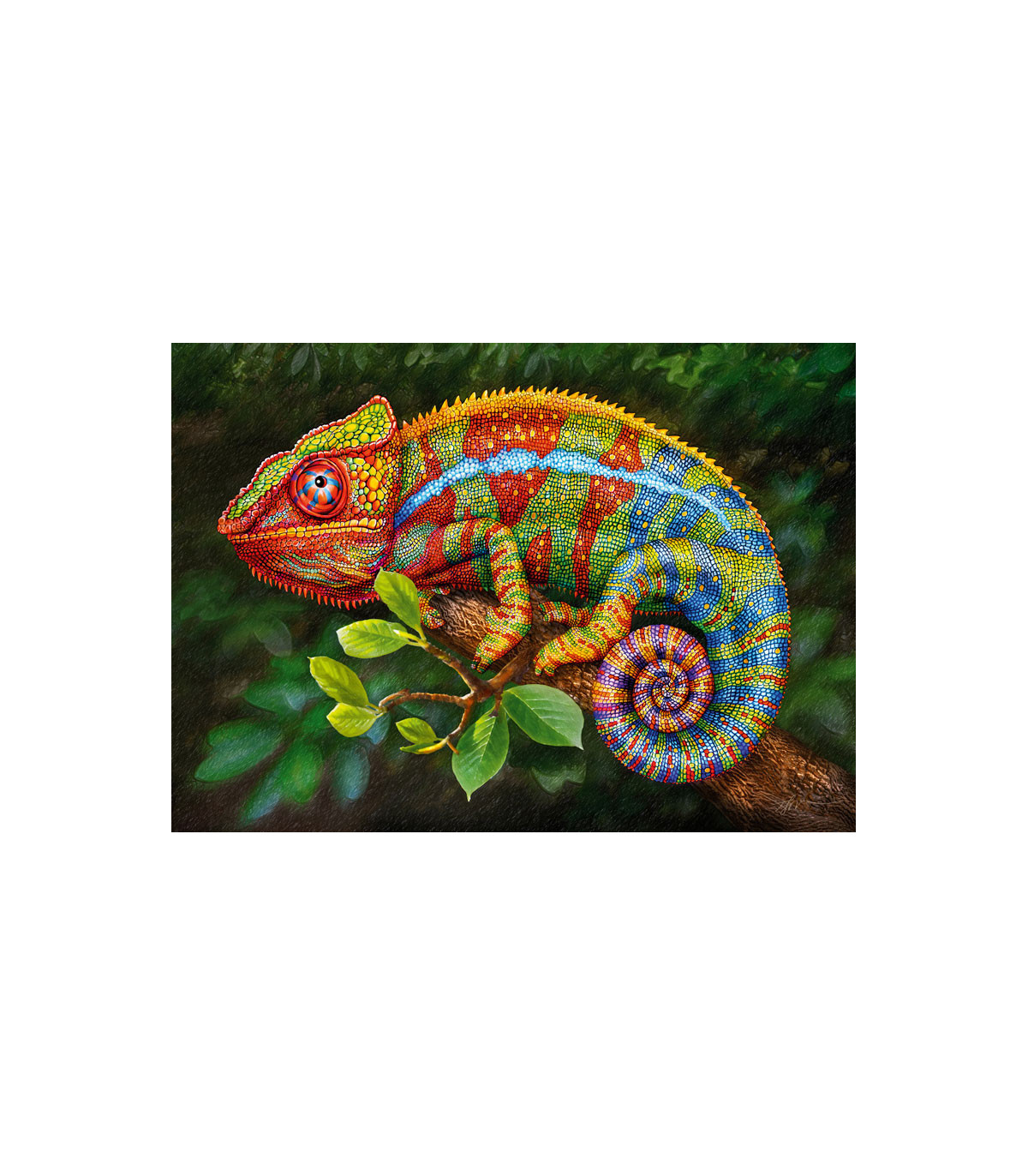 El camaleón es una criatura milagrosa de la naturaleza. Los patrones únicos en la piel y los colores sorprendentes creados por la naturaleza. En cada detalle se captura una asombrosa diversidad y complejidad de criaturas. Es una pintura increíblemente realista que puede transportar a cualquiera al mundo de la naturaleza.