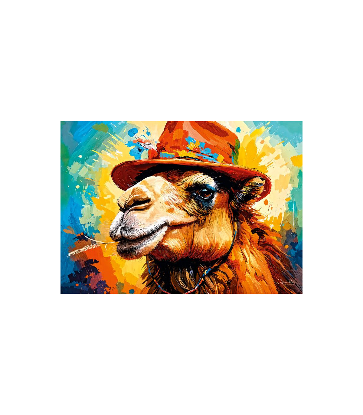 El rompecabezas con un camello encantador y lleno de personalidad, con una leve sonrisa y un brillo en los ojos, que le da una apariencia juguetona pero sabia.