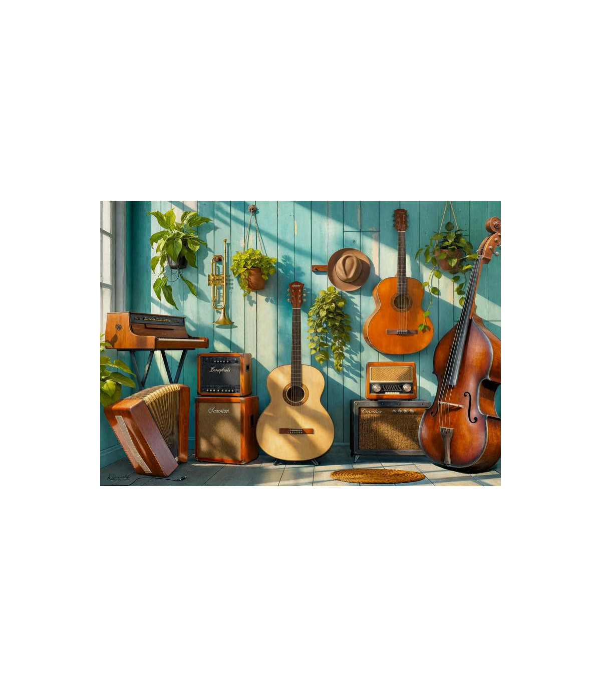 Esta imagen evocadora captura las tranquilas consecuencias de la creatividad, donde cada instrumento contiene historias de música y recuerdos.