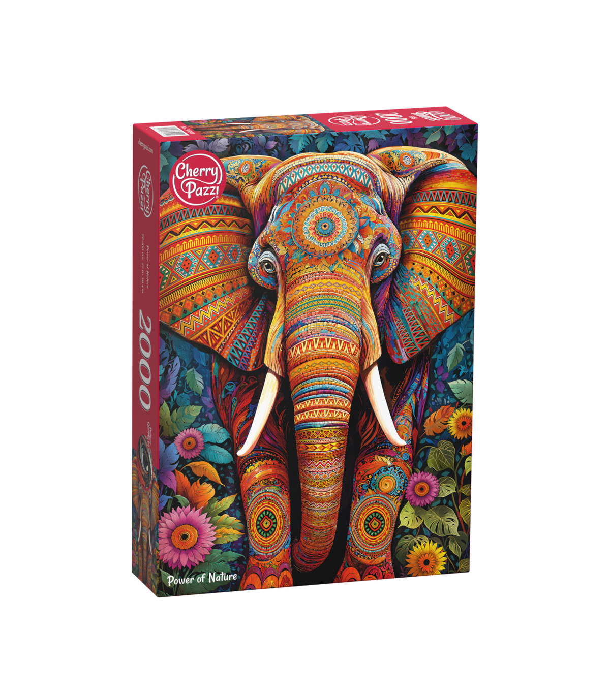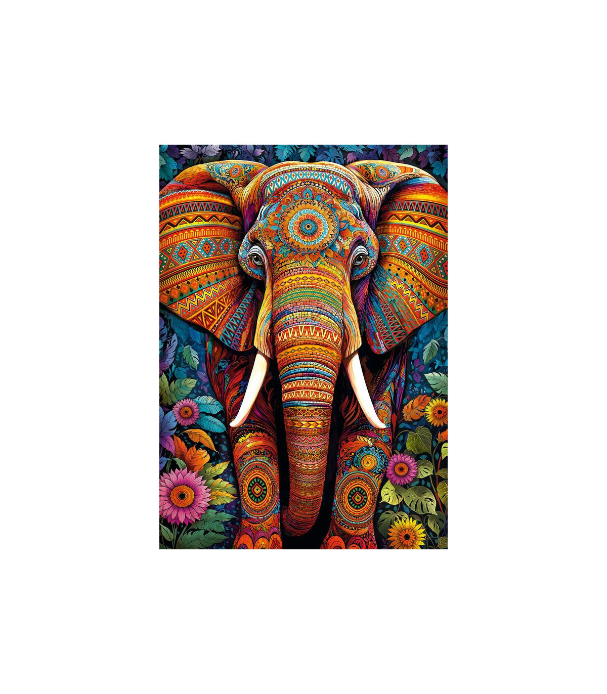 Descubra la vibrante elegancia de este impresionante elefante: un caleidoscopio de intrincados patrones y ricos colores que celebra la fuerza,