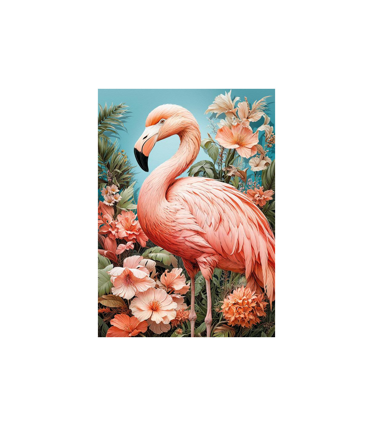 Este elegante flamenco en su radiante rosa nos insta a pensar positivamente, abrazar la creatividad y brillar con confianza.
