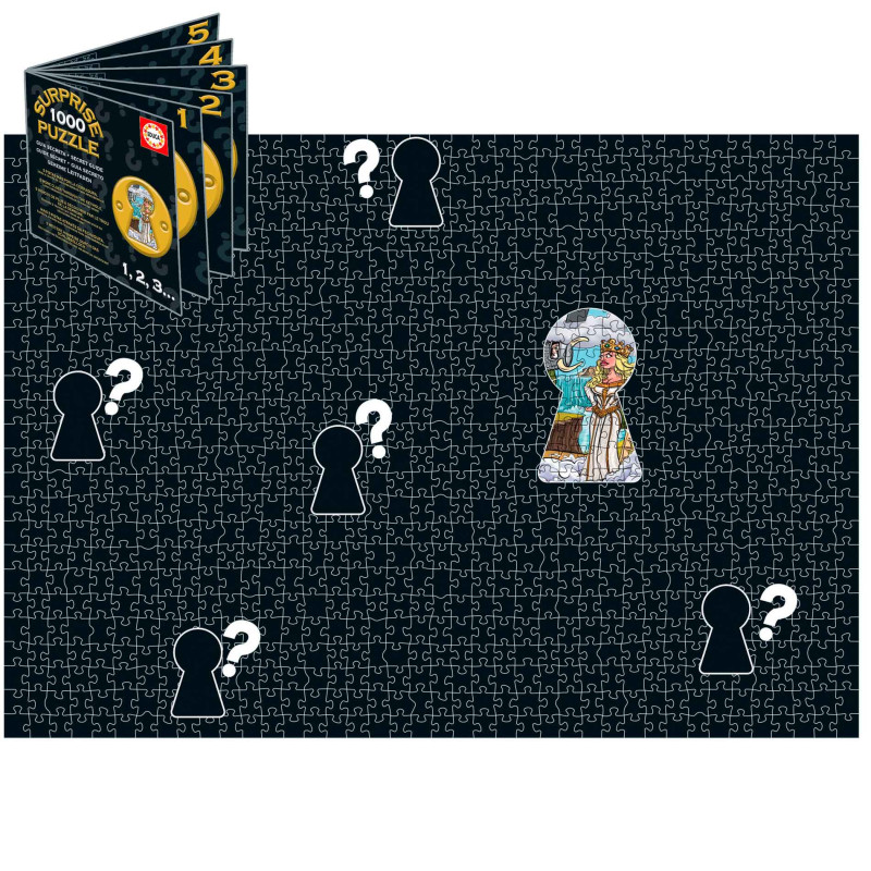 ¡Un puzzle con un giro original y sorprendente! No es un puzzle tradicional, es una caja misteriosa. No sabrás qué imagen estás armando hasta el final. Hay pistas para ayudarte, pero cuidado… ¡nada es lo que parece!