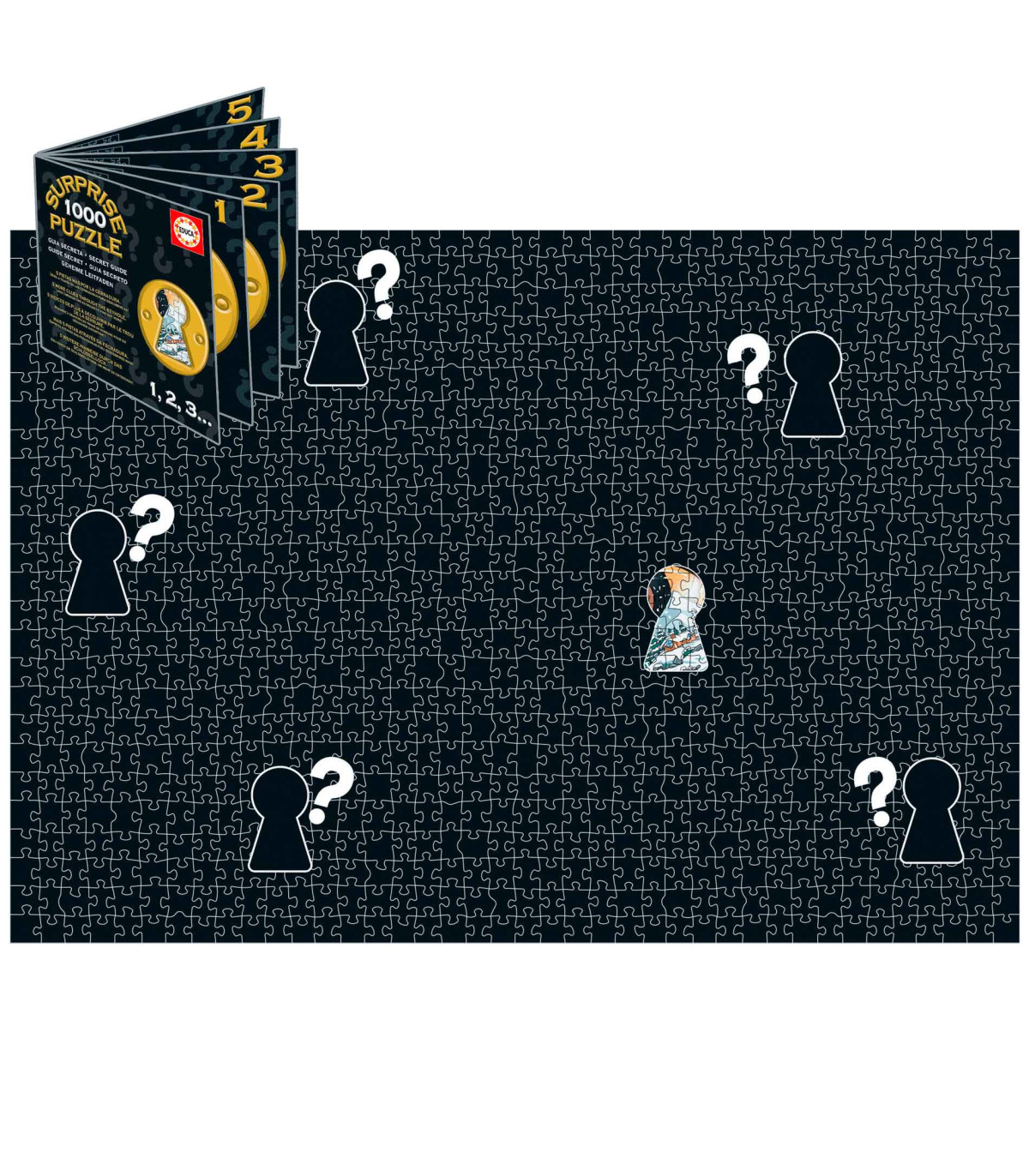 ¡Un puzzle con un giro original y sorprendente! No es un puzzle tradicional, es una caja misteriosa. No sabrás qué imagen estás armando hasta el final. Hay pistas para ayudarte, pero cuidado… ¡nada es lo que parece!