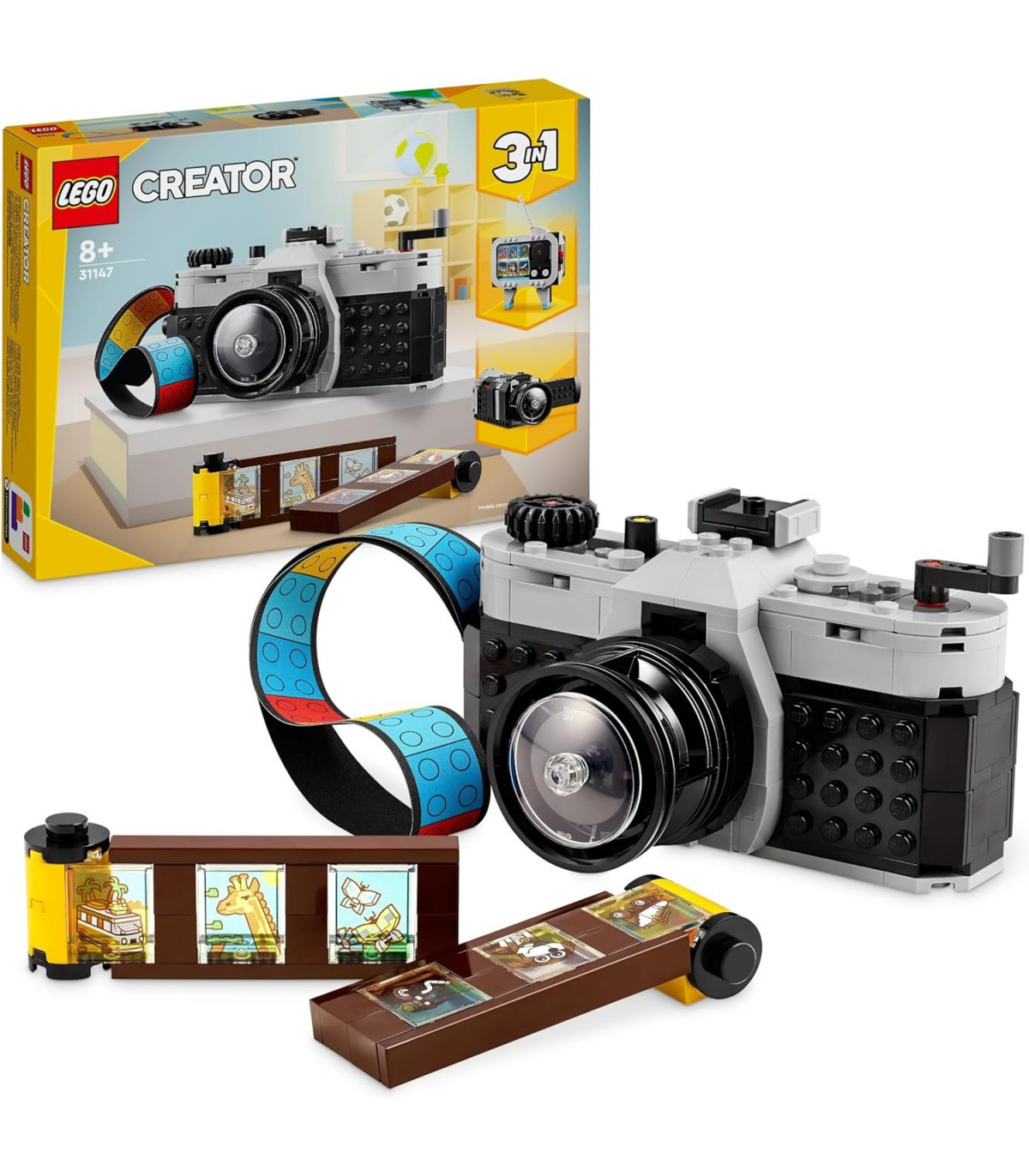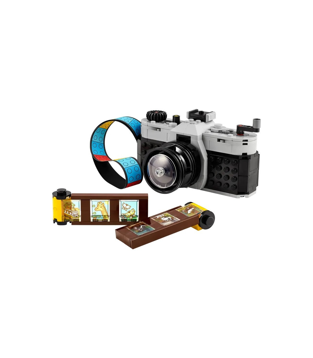 Fomenta el juego imaginativo con el set de construcción LEGO® Creator 3en1 Cámara Retro (31147) para niños y niñas a partir de 8 años. Esta icónica cámara de juguete cuenta con objetivo móvil, disparador, tapa que se abre para poner el carrete construible y una colorida correa textil. Incluye también 6 pegatinas que los peques pueden colocar en la película como si fueran sus fotos.