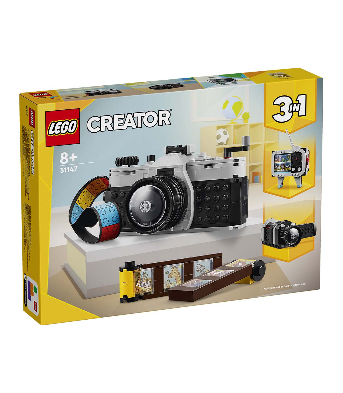 - 3 juguetes retro en 1 caja: Los niños y las niñas de 8 años o más pueden construir y reconstruir 3 aparatos diferentes de tecnología encantadoramente antigua con el mismo conjunto de ladrillos del juguete LEGO® Creator 3en1 Cámara Retro