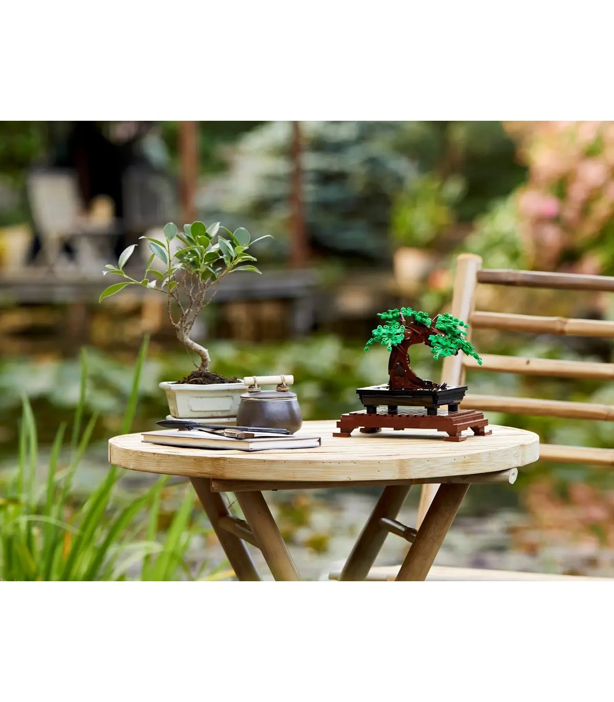 El arte de cultivar bonsáis ha cautivado a los amantes de los árboles y dado alas a su imaginación durante siglos. Ahora puedes rendir homenaje a este arte milenario con el kit de construcción de maqueta LEGO® Bonsái. Disfruta de una agradable sensación de calma mientras das forma delicadamente a tu Bonsái de hojas verdes o flores de cerezo rosas. Cuando te sientas preparado para un cambio, intercambia las coloridas copas para darle un aspecto completamente nuevo. Mira de cerca las flores rosas: ¿ves las ranitas que componen cada una de ellas?