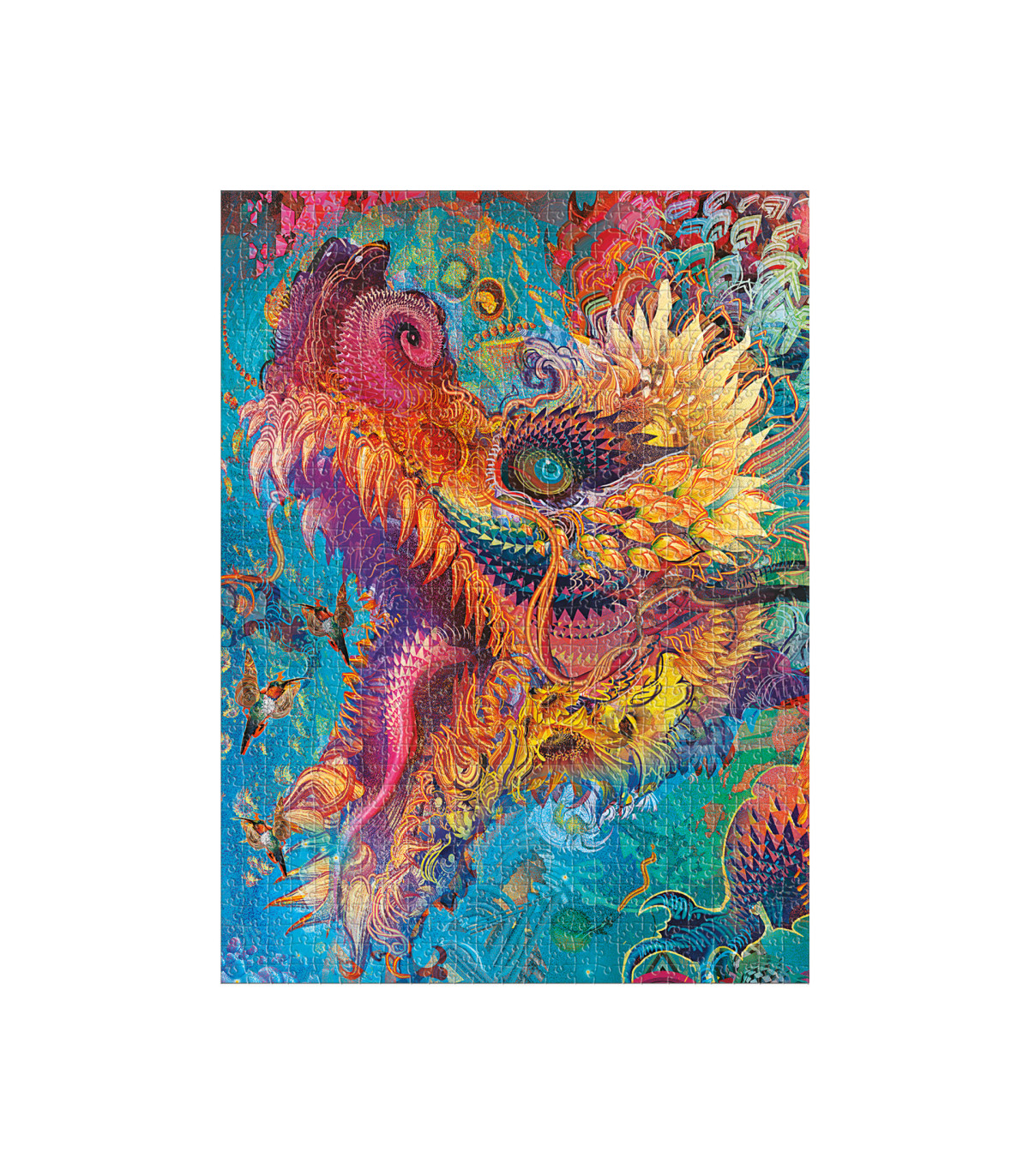 Las prácticas espirituales ancestrales se unen al arte digital en este diseño caleidoscópico que reproduce la obra de Android Jones. Dragón Cromático invita al espectador a tomar conciencia del potencial del despertar espiritual, el poder del tercer ojo y las primeras reverberaciones del tiempo que tenemos por delante.