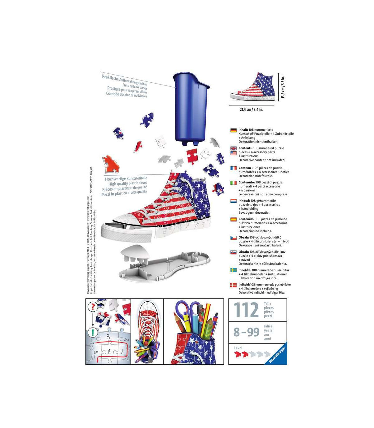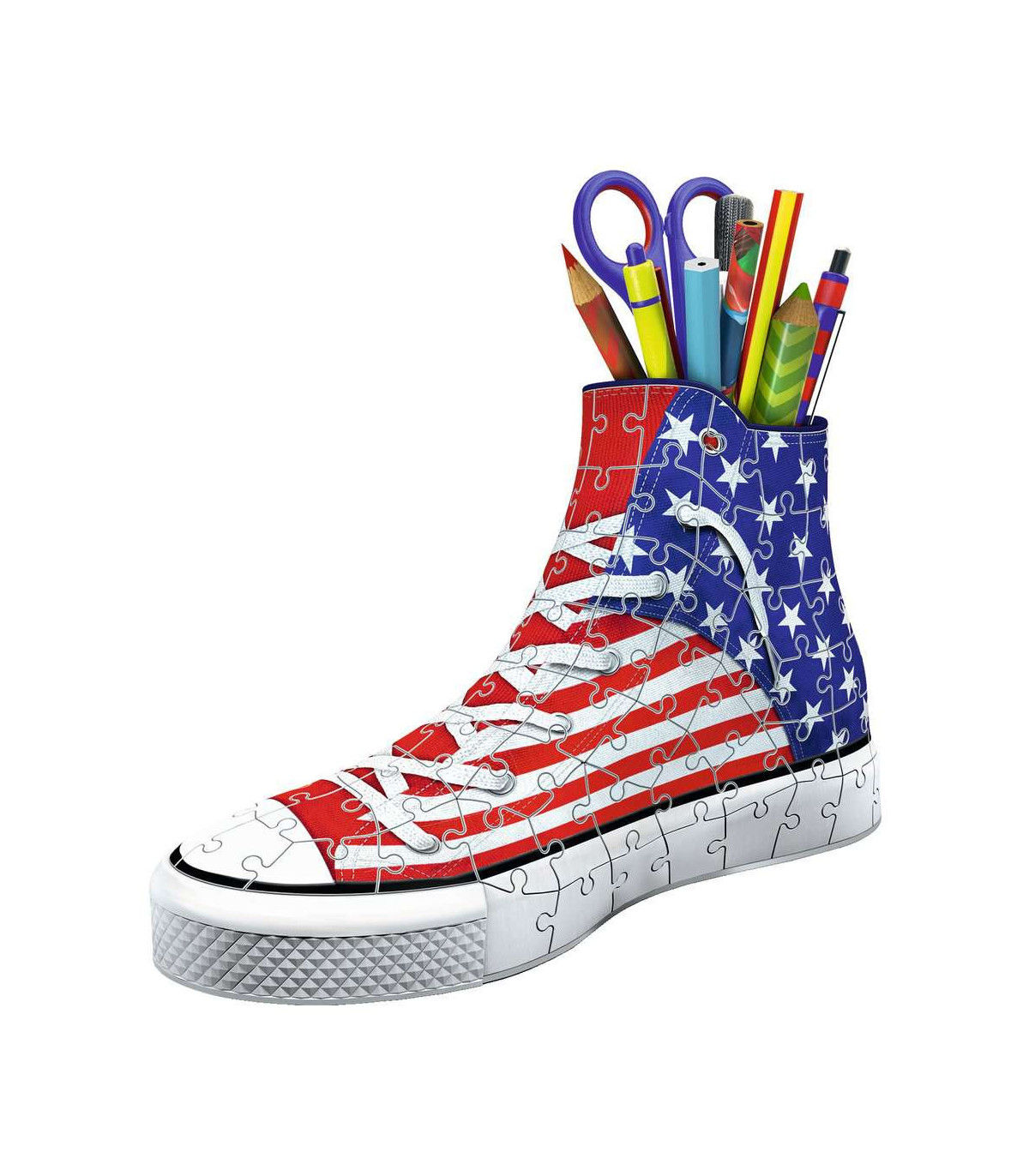 Simplemente único: 112 piezas para crear una zapatilla con ilustraciones de American Style; un innovador portalápices que viene de un rompecabezas