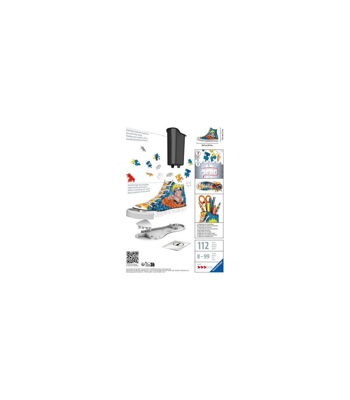 Simplemente único: 112 piezas para crear una zapatilla con ilustraciones de NARUTO; un innovador portalápices que viene de un rompecabezas