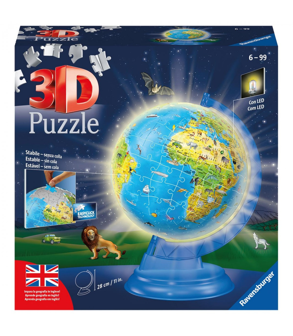 Globo geográfico 3D de 188 piezas con soporte giratorio incluid, AHORA CON LUZ!!!!!