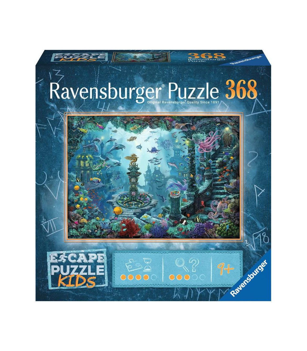 La idea: Varios jugadores se dejan encerrar en una sala y deben resolver los enigmas que se ocultan en la sala para cumplir una misión. Este principio de juego constituye la base para una variante de puzles totalmente nueva: los puzles EXIT PUZZLE. ¡Una vez que las 368 piezas están colocadas en su sitio, entran en juego la capacidad de razonamiento deductivo, la fantasía y la intuición! Al igual que en las «exit rooms» en vivo, en los puzles EXIT PUZZLE los niños se sumergirán en una emocionante historia que les llevará a misteriosos mundos. ¡Los enigmas con diferentes niveles de dificultad de los puzles garantizan gran diversión y variedad!