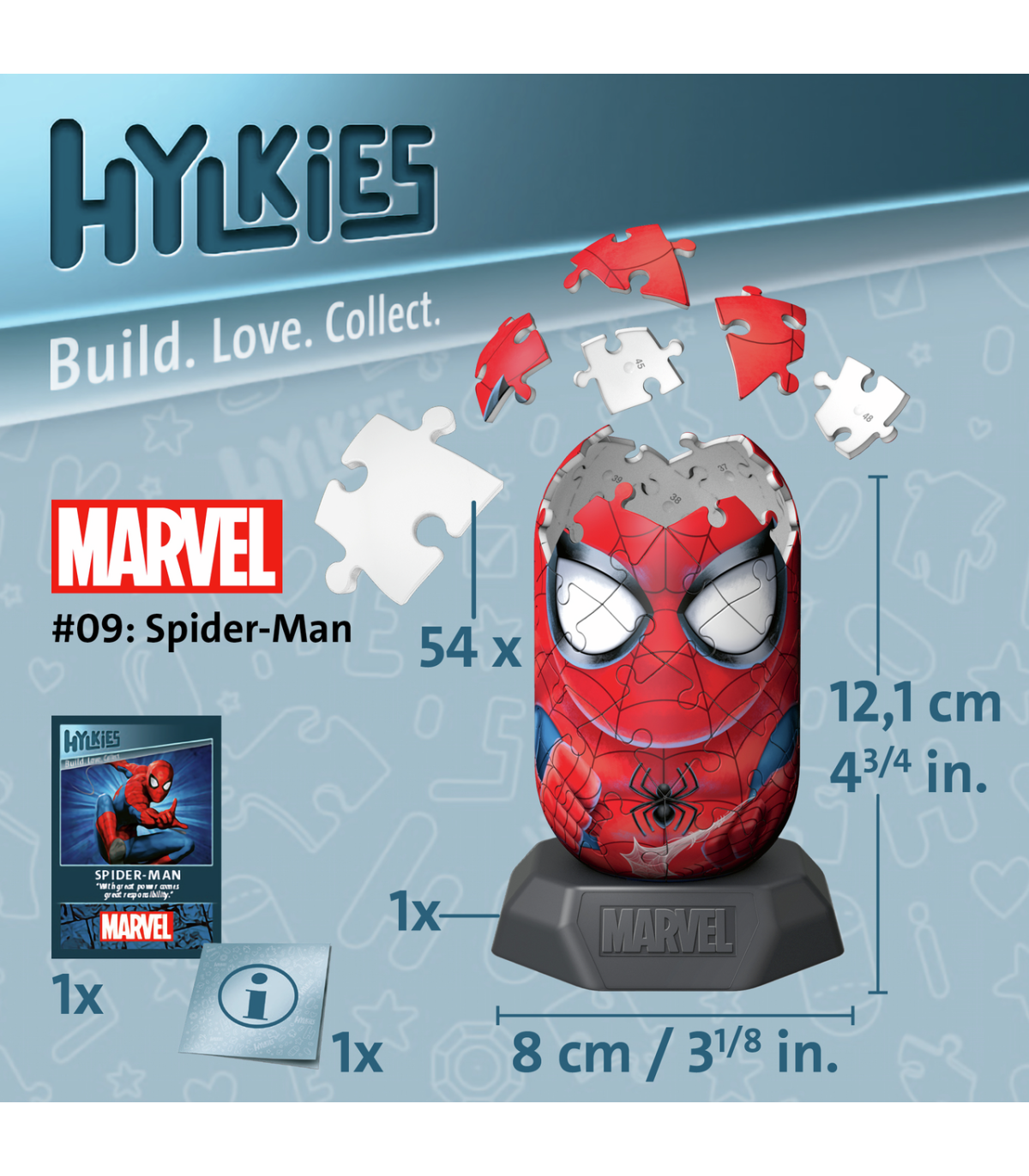 Uno de tus héroes favoritos se crea a partir de 54 piezas de rompecabezas en un breve proceso de ensamblaje intuitivo y relajante. Los Hylkies vienen con la alta calidad habitual de Ravensburger: una experiencia de alta calidad desde el embalaje hasta el contenido, desde el desembalaje hasta el montaje.