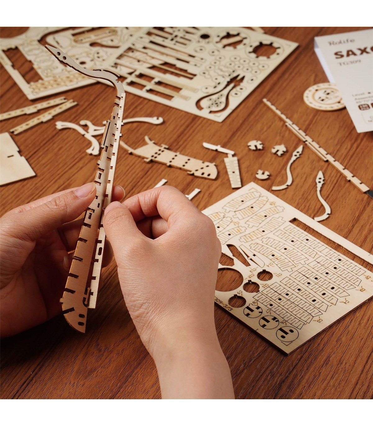 Nueva linea de instrumentos musicales. Diviértete montando con tus manos estos hermosos diseños únicos y decorativos perfectos para los amantes del DIY. Una experiencia enriquecedora y relajante que pondrá a prueba tu paciencia y tus habilidades. Un reto perfecto para el fin de semana.Este producto contiene láminas de madera de contrachapado de alta calidad precortadas por láser de alta precisión.
