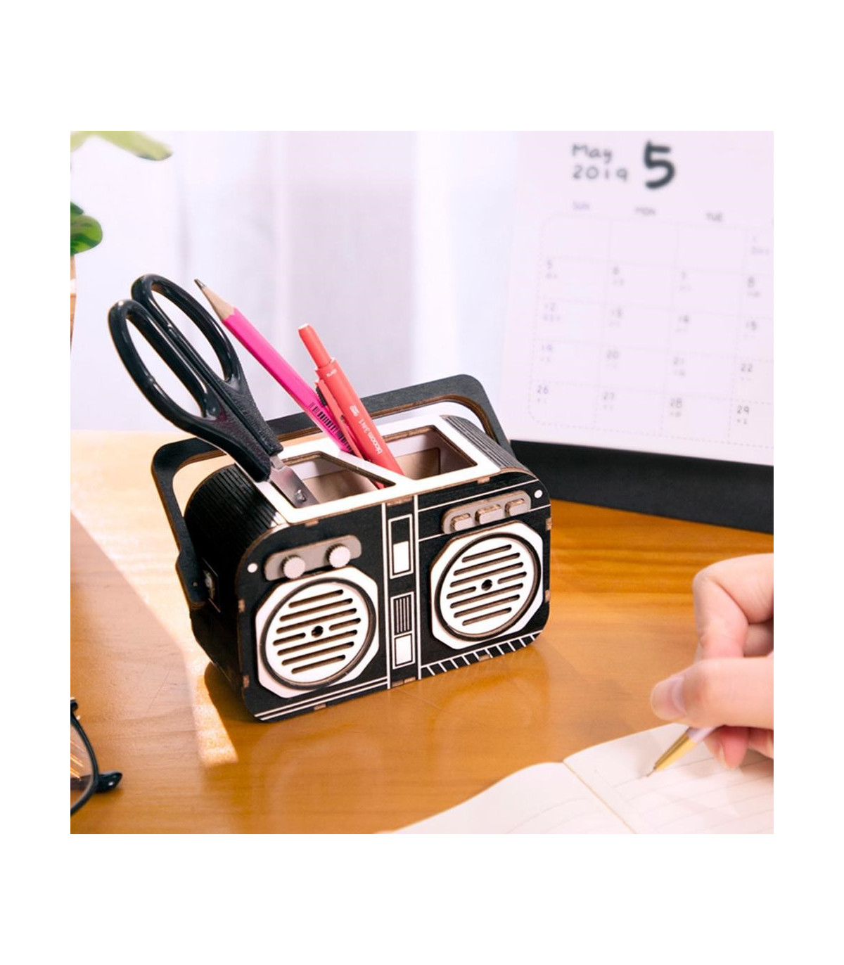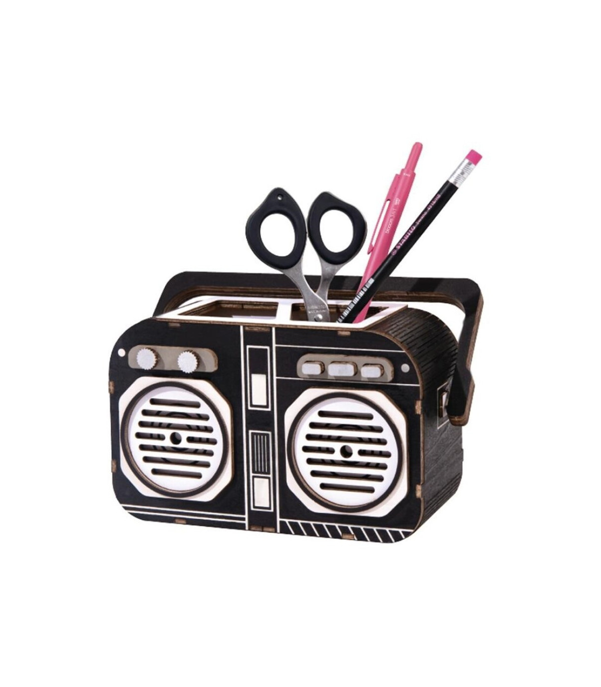 Porta lápices con forma de radio. Creativo y perfecto para decorar y organizar tu oficina. Ideal para los amantes del DIY. Una experiencia enriquecedora y relajante que pondrá a prueba tu paciencia y tus habilidades. Un reto perfecto para el fin de semana.Este producto contiene láminas de madera de contrachapado de alta calidad precortadas por láser de alta precisión.