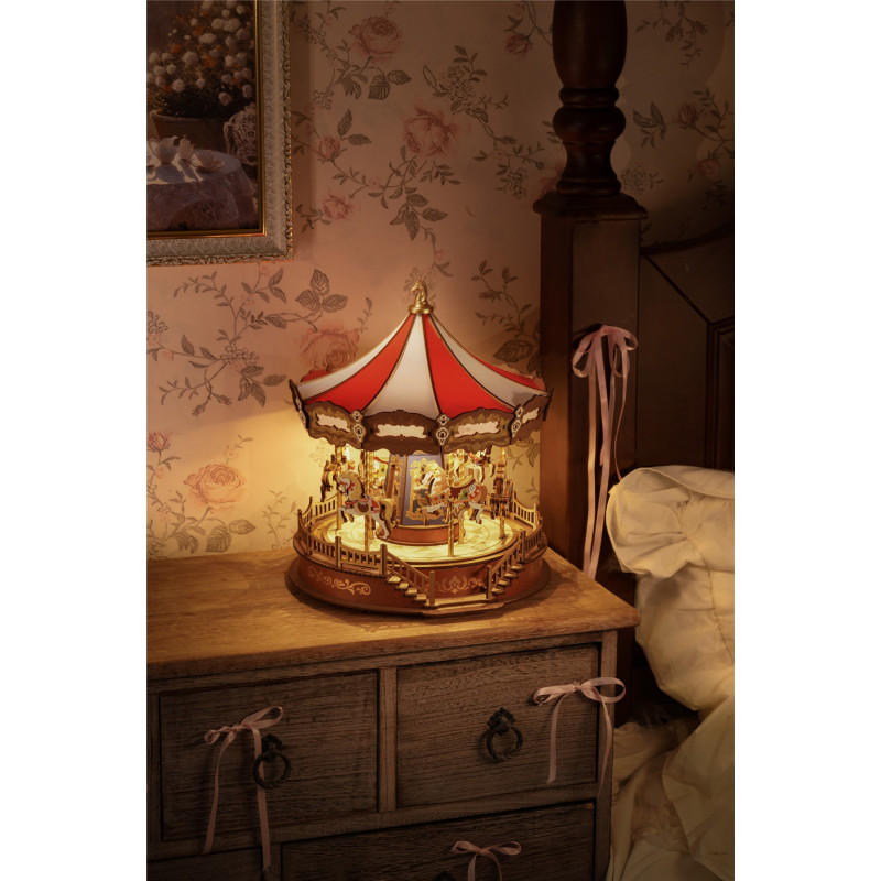 Revive la magia de los parques de diversiones con el **Rolife Classic Carousel AMC01**, un encantador puzzle 3D de madera que combina música clásica, luces cálidas y un diseño giratorio realista. Con 9 monturas detalladas, espejos decorativos y 4 melodías relajantes, este carrusel en miniatura ofrece una experiencia visual y sonora envolvente. Su montaje sin complicaciones y estructura robusta lo hacen ideal como regalo, decoración o proyecto creativo. Perfecto para quienes buscan un toque nostálgico y elegante, este modelo es una joya artesanal que transforma cualquier espacio en un rincón de ensueño.